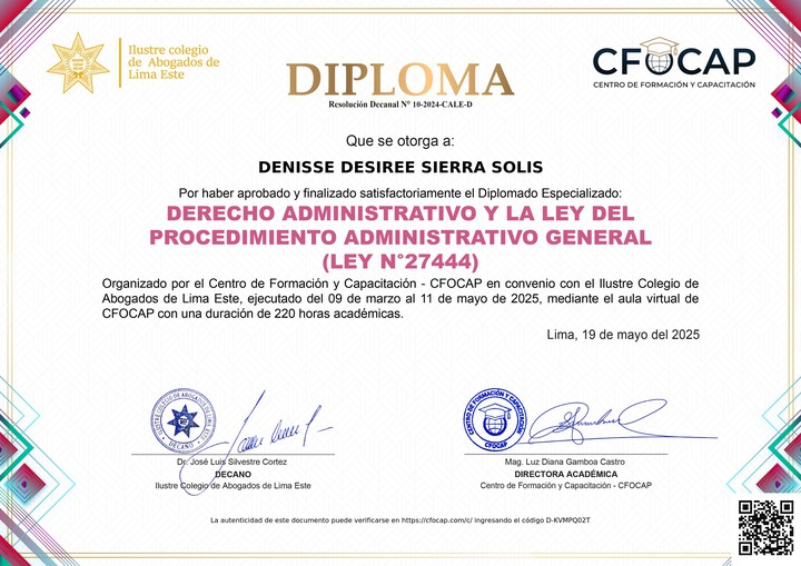 Diplomado Especializado: DERECHO ADMINISTRATIVO Y LA LEY DEL PROCEDIMIENTO ADMINISTRATIVO GENERAL (LEY N°27444) bd