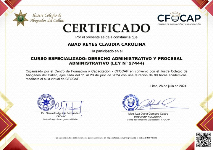 Curso Especializado: DERECHO ADMINISTRATIVO Y PROCESAL ADMINISTRATIVO (LEY N° 27444) 19