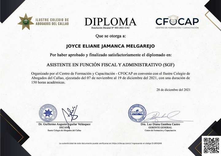 Diplomado: ASISTENTE EN FUNCIÓN FISCAL Y ADMINISTRATIVO (SGF)